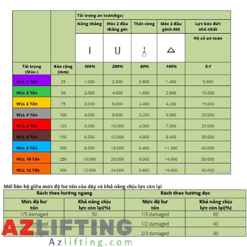 - Màu sắc luôn đúng với tải trọng làm việc, bản rộng, thông số kĩ thuật đạt chuẩn…