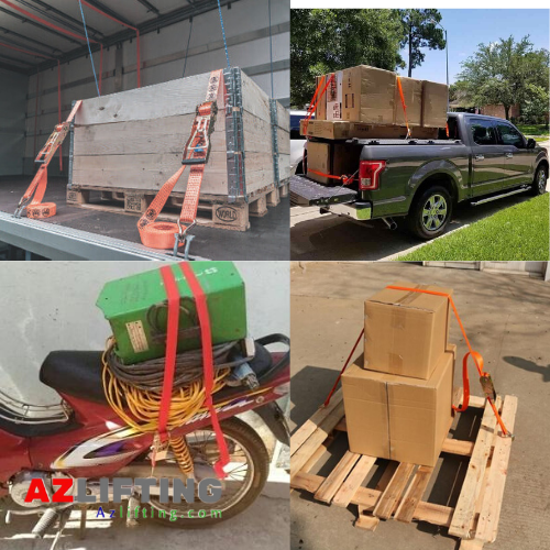 Dây chằng hàng được sử dụng trong công nghiệp, vận chuyển hàng hóa bằng xe tải, tàu thủy, tàu hỏa, đóng gói hàng hóa, cố định hàng trên pallet, trong container,..