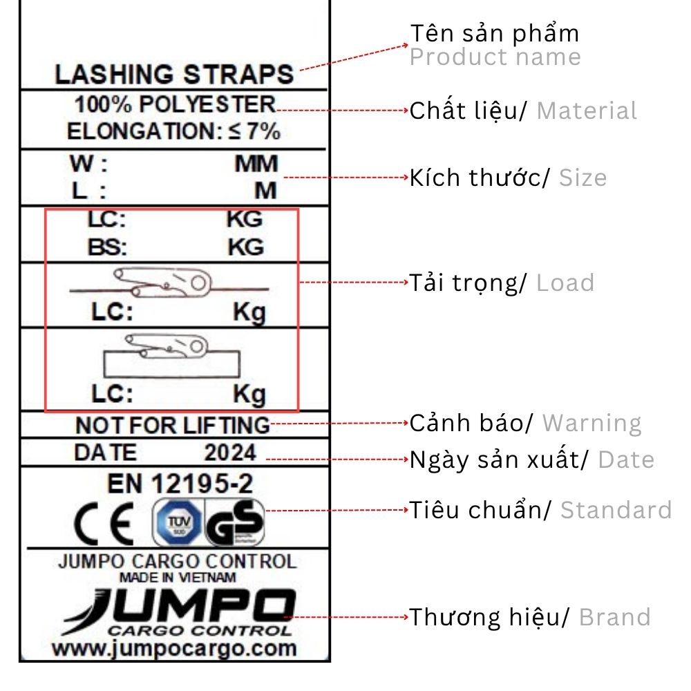 Ghi rõ LC (Lashing Capacity – khả năng siết chặt) theo đơn vị daN hoặc kg