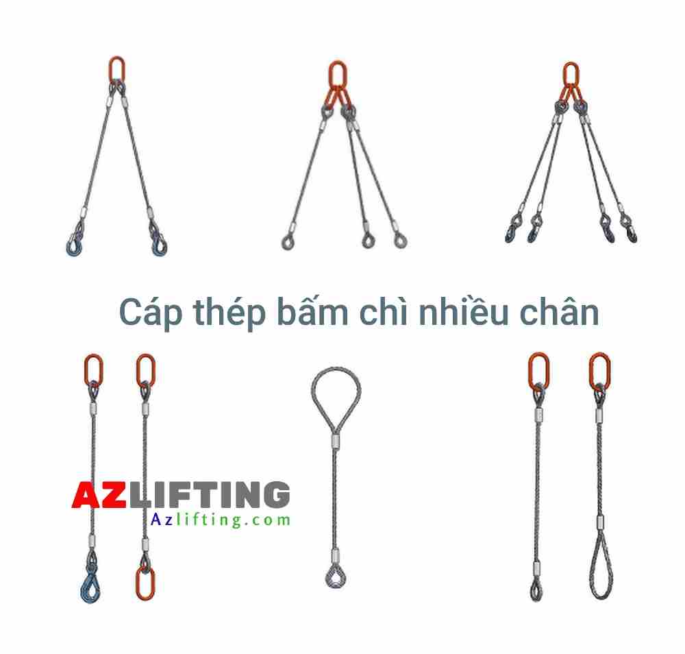 Đầu trên thường lắp với khoen đơn/ đôi tùy theo số thượng chân và size cáp thép. thường bấm chì cố định