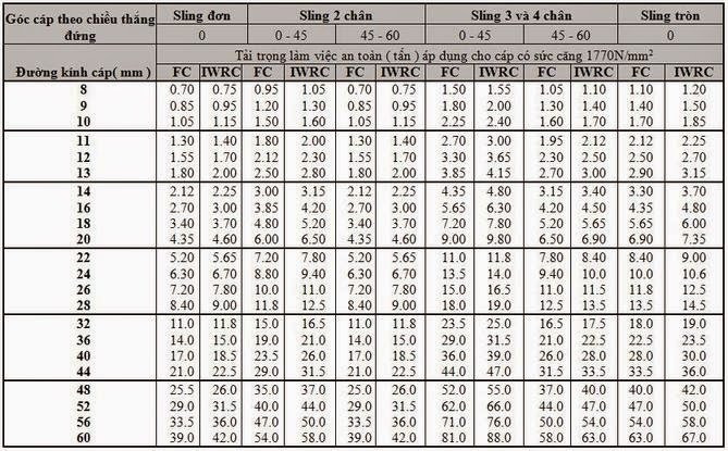 Phân loại và thông số kỉ thuật của sling cáp thép nhiều chân