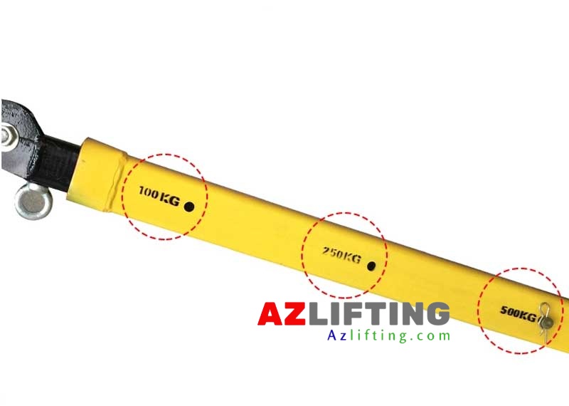 Cánh tay vươn làm từ thép dày, chắc chắn. Trên cánh tay vươn có 3 lỗ điều chỉnh độ dài phù hợp với 3 trọng tải nâng hạ