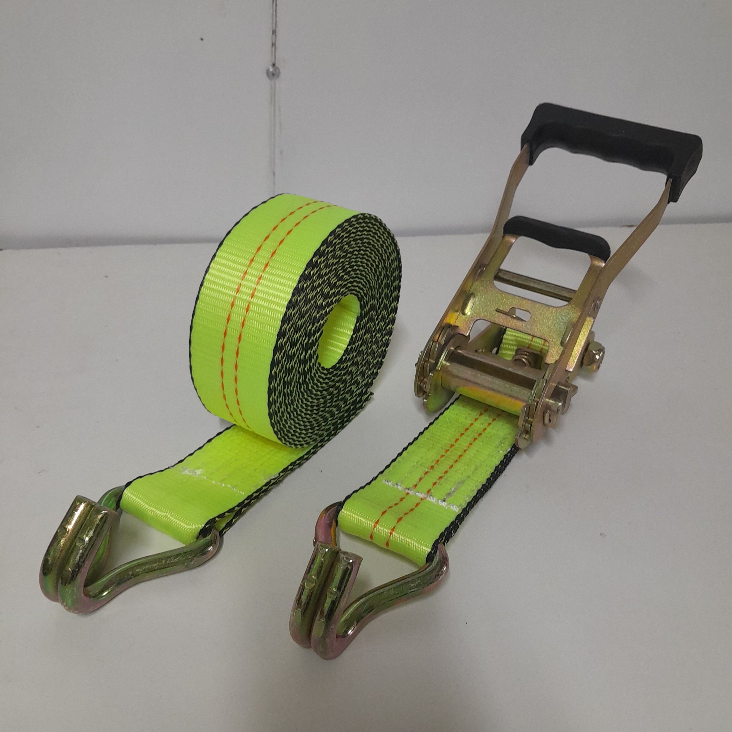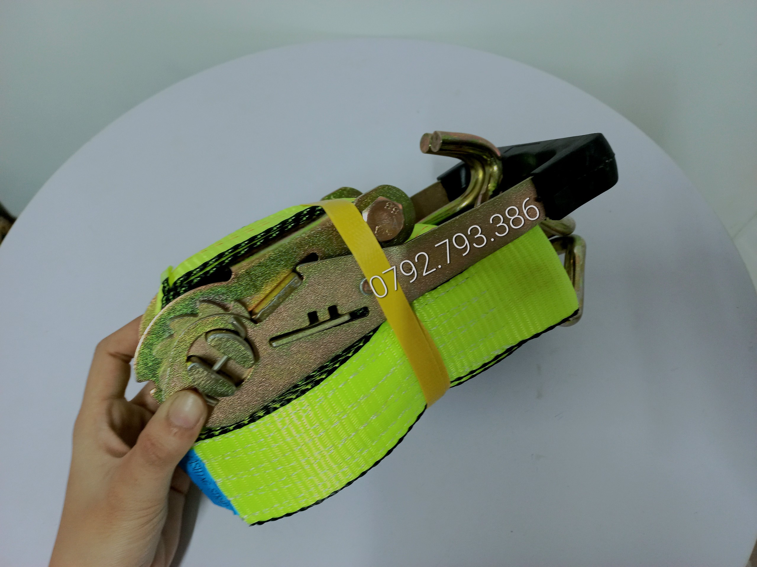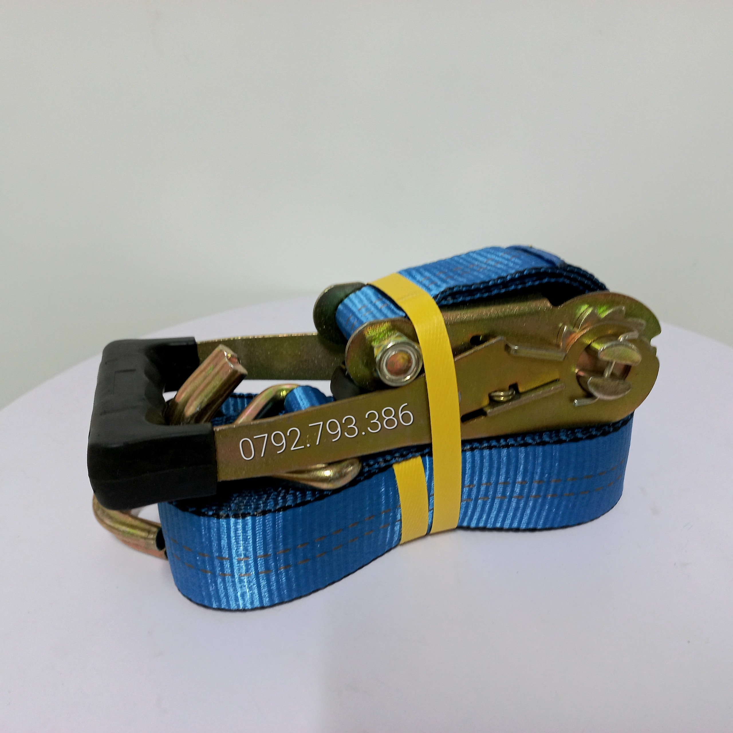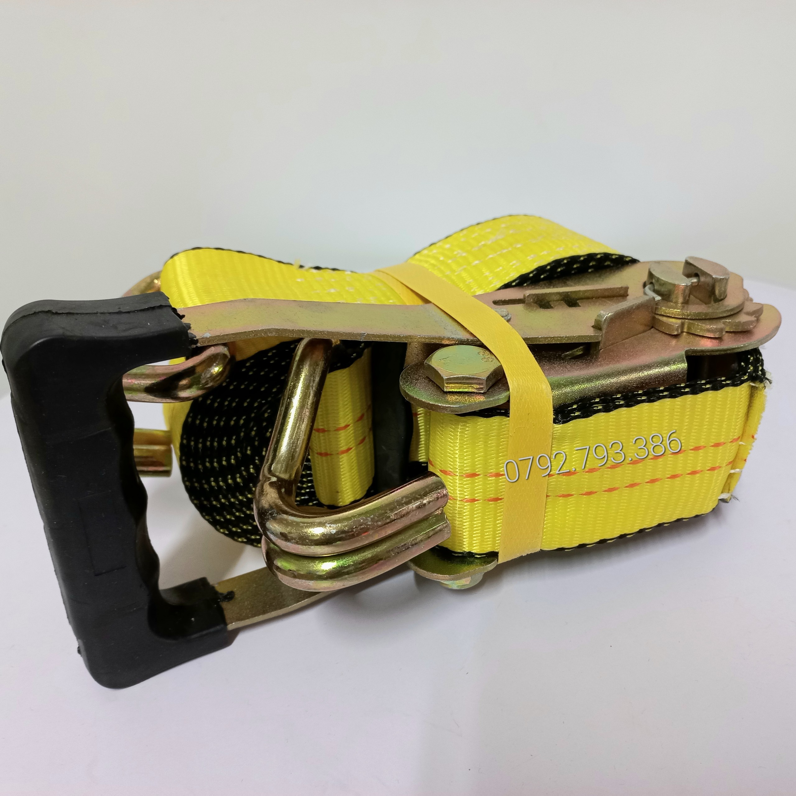 - Cụm 1 : dây đai polyester , 2 đầu móc 2 bên (Móc chữ J – J-Hook) và 1 khóa cài ở giữa (Khoá tăng đơ – Ratchet) được may lại với nhau và móc J (hoặc kết cấu móc khác, đầu mắt,..)