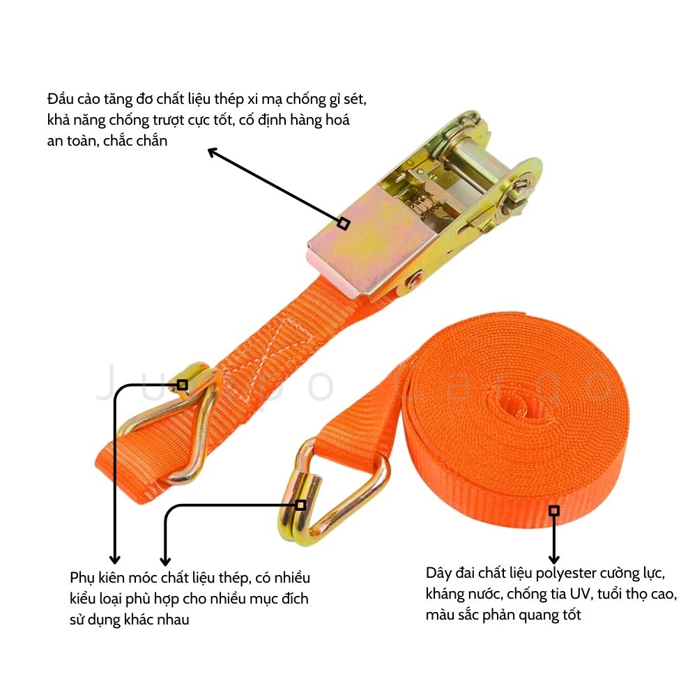 Dây chằng hàng khóa cam 250kg bản 25mm móc J
