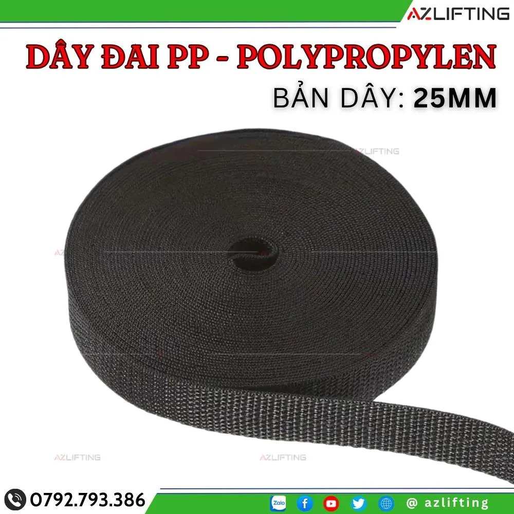 Dây đai dệt PP bản 25mm là loại dây dệt từ sợi polypropylen tổng hợp, có độ dẻo và đàn hồi tốt, thích hợp cho các nhu cầu đóng gói và ràng hàng tải nhẹ. Dây có bề mặt mịn, ít bai giãn, màu sắc đa dạng, dễ may vào sản phẩm hoặc cố định hàng hóa nhỏ gọn trong kho, xưởng sản xuất.