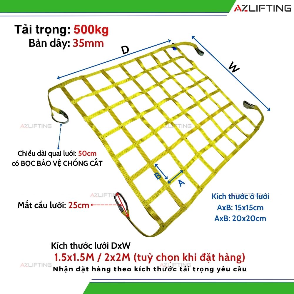 🔧 Cấu tạo sản phẩm Lưới bẹ cẩu hàng - Lưới cẩu nâng 500kg