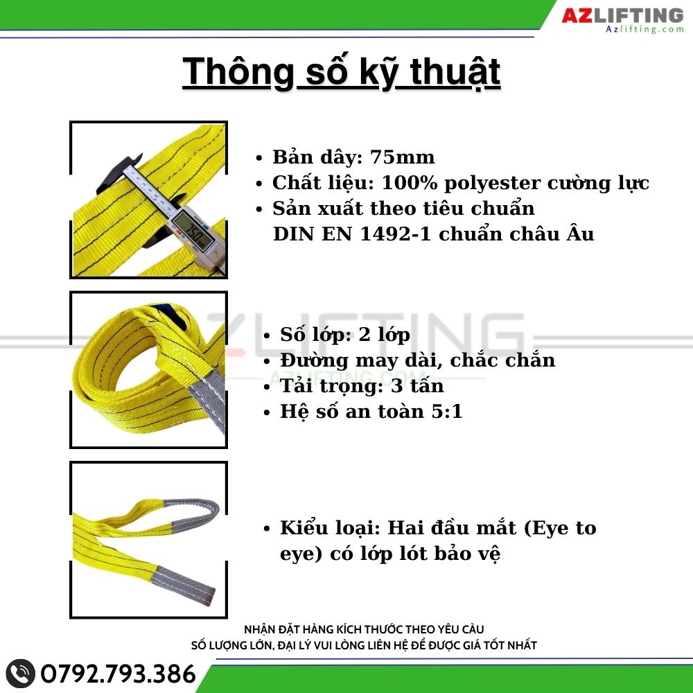 - 2. Cấu tạo và Thông số kỹ thuật Cáp vải dẹt 3 tấn 2 đầu mắt 5:1