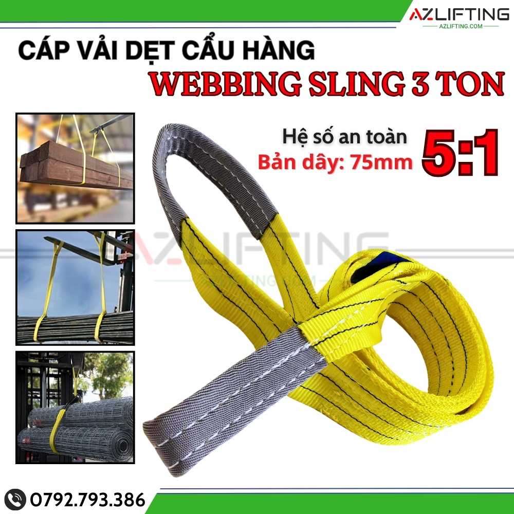 Cáp vải bản dẹt 3 tấn hệ số an toàn 5:1 phù hợp cho các công việc nâng hạ tải nhẹ, không yêu cầu quá cao về hệ số an toàn, chẳng hạn như: