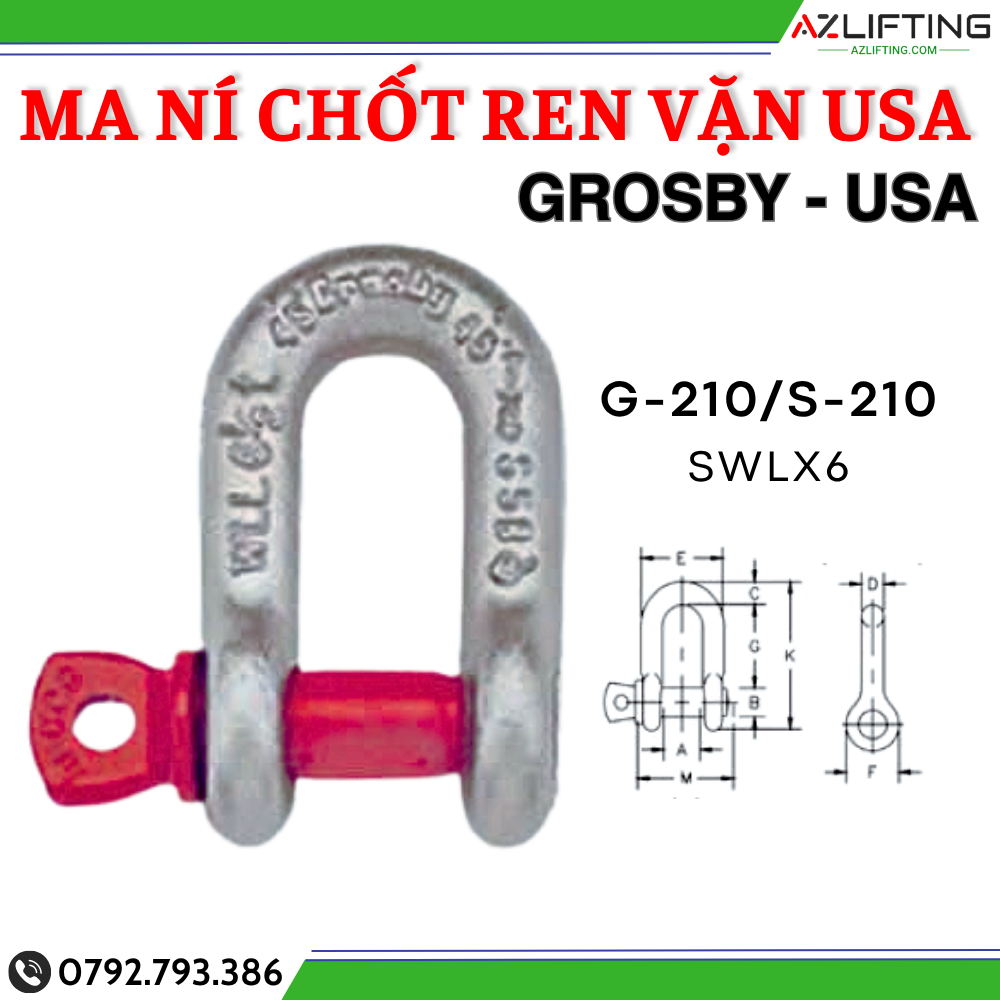 Ma ní chữ U chốt ren vặn Grosby là thiết bị nối dùng để kết nối giữa dây cáp, xích, sling hoặc móc cẩu với vật cần nâng hạ. Thiết kế gồm: