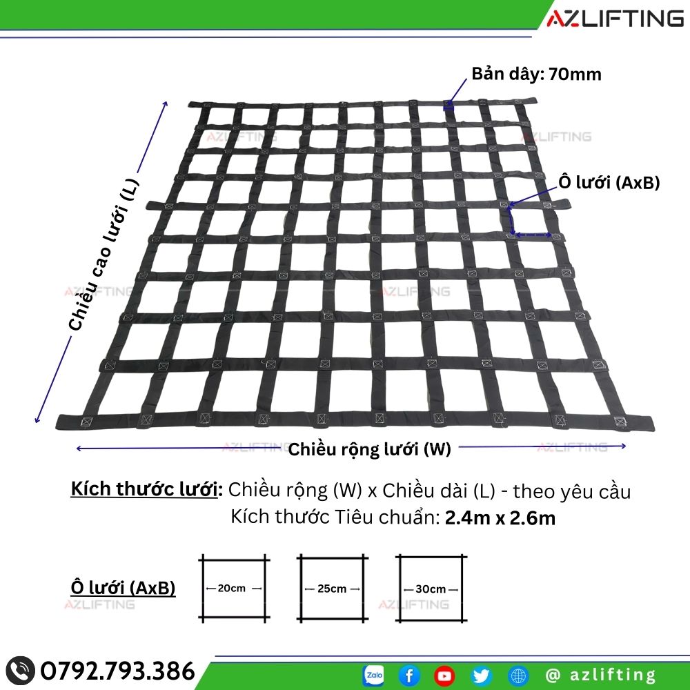 Lưới Chằng Hàng Thùng Container Xe Tải | 2.4mx2.6m Bản 70mm