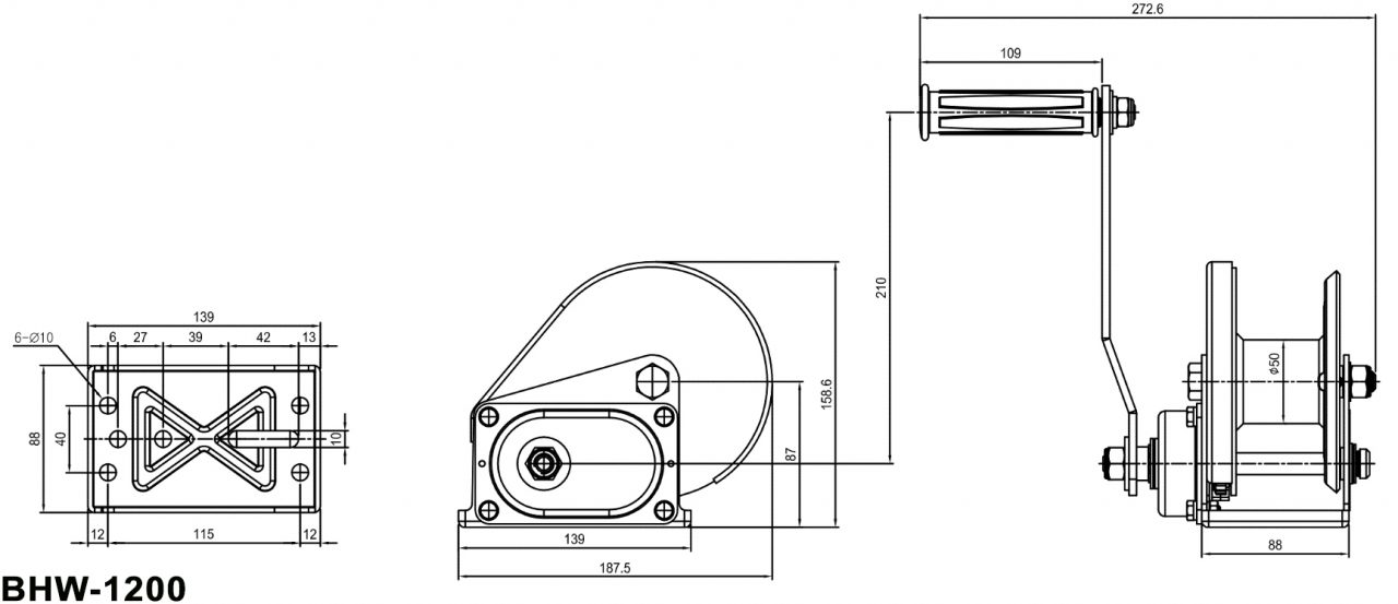 Tời quay tay inox 1200LBS tự khóa -550kg với tải kéo 550kg